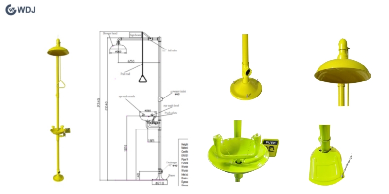 Teflon coating Freestanding Combination Emergency Shower - Stainless steel Shower Head